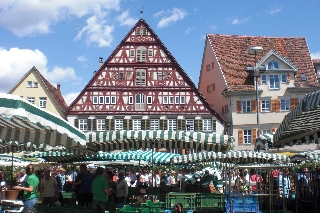 Nürnberg - Esslingen und wieder zurück. Entfernung: 210 km (einfach) Stellplatz/Zeltplatz/Übernachtungsplatz: Stellplatz And der Burg - Mühlberger Straße Preis: kostenlos Service: --- Auf den kutzen Trip zu unseren Urlaugsbekannten und inzwischen guten Freunden aus Esslingen haben wir uns schon länger gefreut. In Lacanau lernten wir uns kennen und nicht nur unsere gleichaltrigen Söhne verstanden sich gleich recht gut. Im Winter waren wir zwar schon einmal hier, aber schlechtes Wetter mit Glatteis haben einen Stadtrundgang damals verhindert. Nach dem Besuch von Familie Reichenberger in Nürnberg steuerten wir unsere "Uschi" nun wieder in Richtung Neckar. Diesmal aber im Sommer! Am Stellplatz an der Burg ist gleich eine Bushaltestelle. Somit ist man zentral zur Innenstadt. Wir benötigten keinen Bus, da unsere Freunde in zu Fuß gut erreichbarer Entfernung wohnen. Es ist also nur für interessierte Wohnmobilisten als Anmerkung gedacht.. Wir machten bei herrlichem Wetter einen Stadtbummel und verbrachten einen sehr angenehmen Tag. Bei der ersten deutschen Sektkellerei, der Kellerei Kessler, genehmigten wir uns ein Gläschen und beim Italiener "baRista" im Dick-Center gab es eine "Monster-Calzone", bzw. Monster-Pizza, nach deren Genuss man erst einmal relativ bewegungsunfähig daherkommt ... Unsere "Stadtführer" zeigten uns eine sehenswerte Stadt mit schönen Ecken, die wir bestimmt nicht zum letzen Mal besucht haben. |