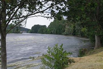 | Nach 10 Tagen an einem Ort und dann auch noch auf einem Zeltplatz, was für uns recht außergewöhnlich ist, ging es heute weiter. Lacanau Océan hat gehalten, was wir uns davon versprochen haben. Der Platz ist eine Top-Adresse. Natürlich kostet er in der Hauptsaison entsprechend. Nun fuhren wir weiter in Richtung Bergeracois, oder, wie es heute heisst, ins Perigord Pourpre. Über die hier prägenden Wein- und Sonnenblumenfelder ging es an der Dordogne entlang über Bergerac und den Canal de Lalinde nach Lalinde. Dort kamen wir rechtzeitig zum einsetzenden Regen an. Das Wetter beruhigte sich aber bald und wir konnten noch etwas außen sitzen. Hier ist eine für Radfahrer und Paddler wie geschaffene Gegend. | |