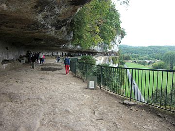 | Märkte in Frankreich haben wir schon viele gesehen. In der Provence, an der Atlantikküste oder im Languedoc. Aber hier im Périgord waren wir bisher noch auf keinem. Deshalb haben wir uns gestern am Zeltplatz einquartiert, da wir wussten, dass heute hier Markttag war. Neben den überall gleichen Artikeln, wie Korbtaschen, Tischdecken und diversen Mini-Salamis (genau diese Dinge haben wir heute gekauft) waren hier natürlich Foie Gras (Gänseleberpastete) und alle möglichen Artikel aus Ente und Gans zu haben. Gegen Mittag fuhren wir über den Zusammenfluss von Vézère und Dordogne bei Limeuil ins Vézèretal ein. Nach einem kleinen Spaziergang in Le Bugue überlegten wir, heute die Felsenwohnungen bei Roque-St.Cristophe zu besichtigen. Die Anlage ist so anschaulich gestaltet, dass man es sich sehr gut vorstellen kann, wie hier Menschen über die Jahrtausende gelebt und gearbeitet haben. Den eigentlich angestrebten Womo-Platz in Les Eyzies haben wir weder verlassen, weil die schönsten Plätze ab dem nächsten Tag für einen Womo-Verein aus Paris reserviert waren. Deshalb checkten wir am nahen Zeltplatz La Riviére ein. | |