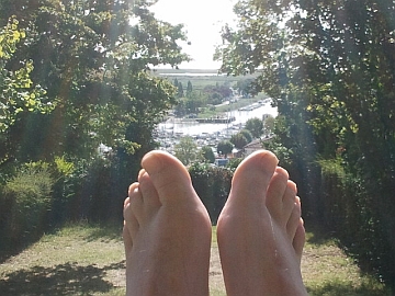 | Mediterrane Mühle bei Blaye | Blick auf meine Füße und den Hafen von Mortagne sur Gironde |