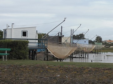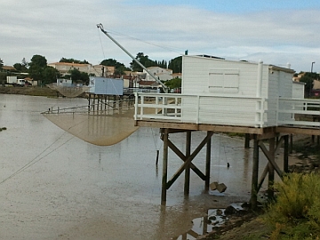 | Fischerhäuschen mit Senknetz am Hafen von Meschers sur Gironde | La Palmyre |