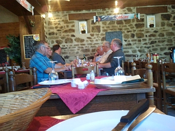 | Nach dem Besuch in der Werkstatt war klar - der "Radiateur war im derrière" (ich weiß, das der Franzose 'fichu' sagt, aber das reimt sich nicht). Die Frage nach der Zeit für die Reparatur begann der Werkstattchef mit sowas wie "peut-être". Dies stellt in Frankreich eine vage Zeiteinheit dar, die man nicht so ganz ernst nehmen sollte. Also berieten wir die Lage, kippten Dichtmittel in den Kühler und entschlossen uns, da wir ja noch Zeit hatten, erstmal grob in Richtung Heimat zu fahren. Wir wollten noch einige Tage Radurlaub im Burgund einlegen, um nicht ganz abbrechen zu müssen. Von dort wäre es auch nicht mehr so weit bis Deutschland. Also setzten wir heute in Richtung Burgund über. (Witzigeweise verloren von nun an wir fast für den Rest des Urlaubs kein Kühlwassser mehr). Auf dem Weg konnten wir ein "Les Routiers", was in Frankreich seit den 30er Jahren für die Verpflegung von Leuten unterwegs gedacht ist, ausprobieren. Wir hatten schon vieles darüber gelesen, aber entweder war bisher keins auf dem Weg, oder wir waren zur falschen Zeit an so einem Ort. Diesesmal war alles perfekt. Wir betraten ein urgemütliches Natursteinhaus, in dem sechs Trucker schlemmten. Einige Flaschen Rotwein gingen über den Tisch, und es schmeckten den Leuten sichtlich. Also bestellten wir unsere fünf Gänge. Dies geschah überraschend schnell, weshalb wir das Ganze mehr unter der Rubrik "Pressbetankung" ablegten. Aber es war alles lecker und ist mit 12,50€ pro Schnüffel wirklich erschwinglich.Abends fanden wir einen kleinen Stellplatz, der uns zur Übernachtung gut passte. | |